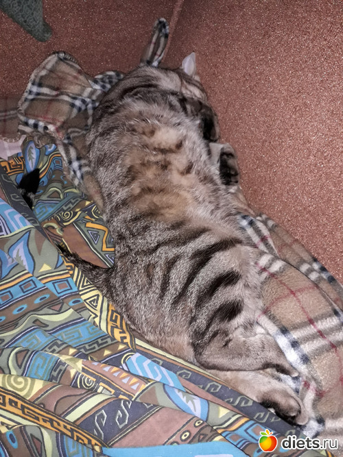 Моя Василиска ложится спать или вместе со мной, или даже раньше, если я сажусь работать. И спит, как зайчик, до утра!