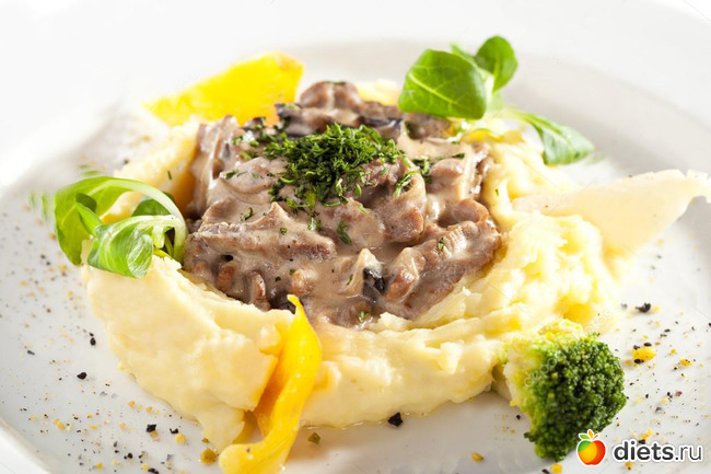 Diets.ru Бефстроганов из говядины с грибами и Картофельным Пюре