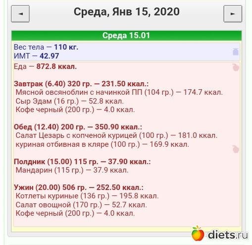 Калорийность продуктов
