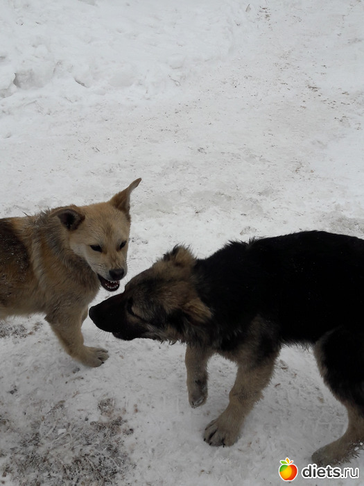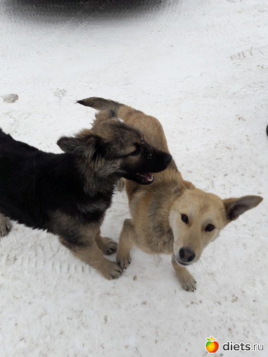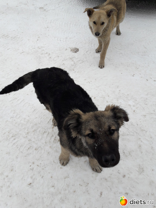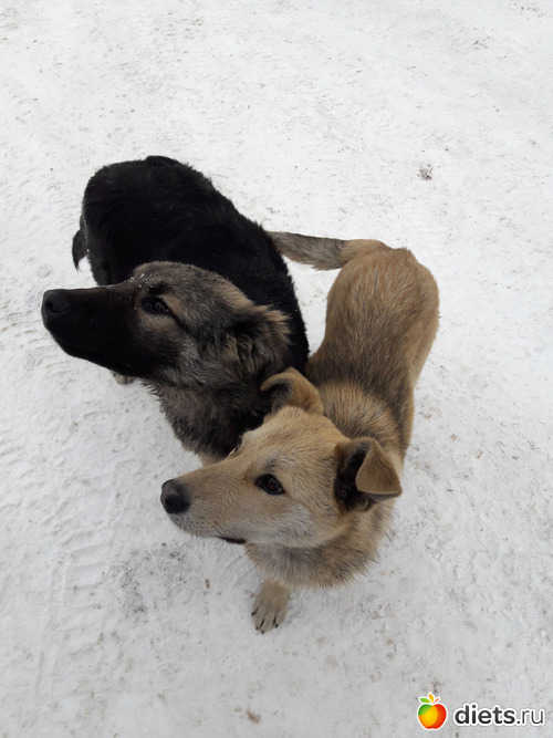 Возле работы бегают две собаки. Это они уже подросли. А были такие пупсы.