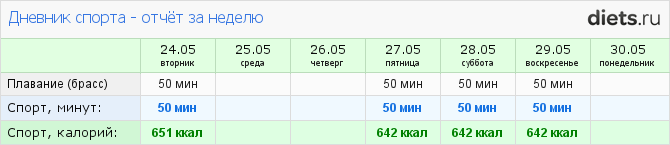 План на след. неделю придется пересмотреть, так как не выполнен был план на эту неделю. В следующий понедельник будем надеяться будет - 72 кг.