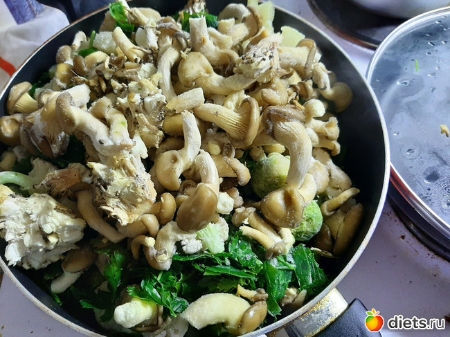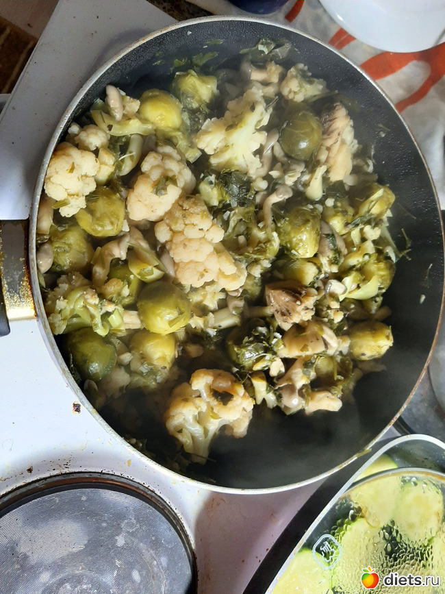 Достала заморозки: брюссельскую капусту (магазинную), вешенки, а дальше - мамины дачные: цветную капусту, перец болгарский, петрушку))