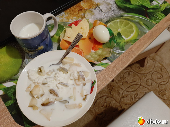 Успела позавтракать: творог+кефир+груша+яйцо варёное + 30 г сыра "Ламбер" По планам на вчера:
