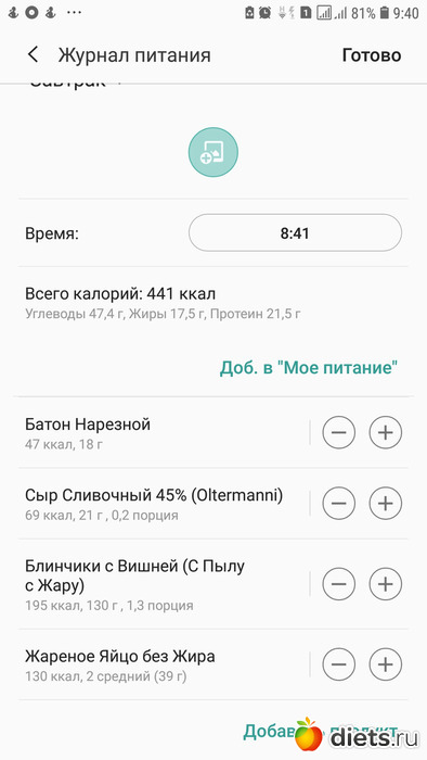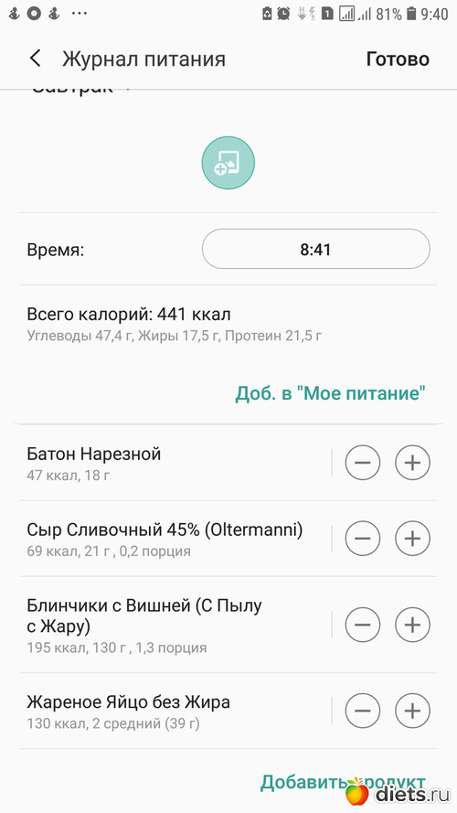 Калорийность продуктов