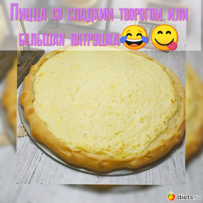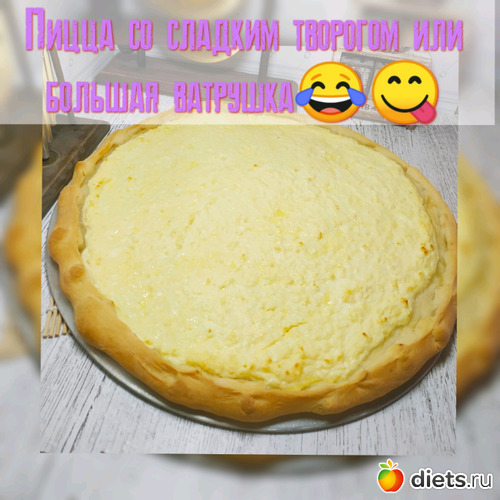 Опять пицца на тонком тесте. Супруг попросил сделать ему пиццу со сладким творогом. Очень понравилась этакая большая ватрушка на тесте для пиццы,