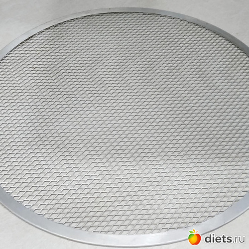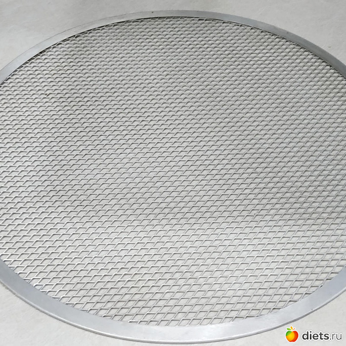Пицца у меня выпекалась на основе сетке. Диаметр сетки 36 см.