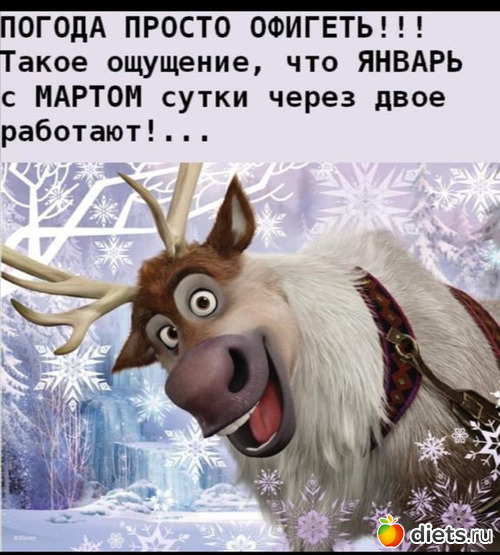 Девочки, всем добрый день! Что то я совсем обленилась, да собственно и писать то особо нечего. Все как обычно, живем потихоньку. Уже, все чаще приходят мысли о лете, появляется желание повозиться на даче. Периодически работаю бабушкой. Не забываю и ЗОЖ. У нас морозно, 20 град., подвалило снежку, за последние дни. Видимо зима вспомнила, что она зима.