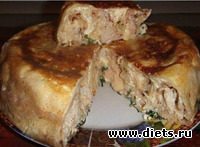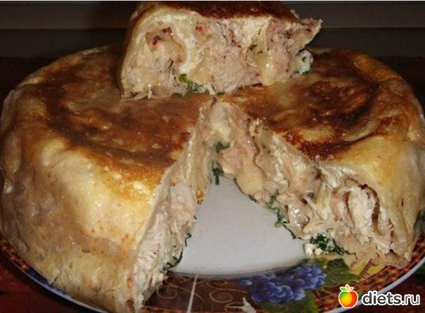 Этот пирог получается очень пышным и сытным, а куриная начинка делает его безумно сочным!