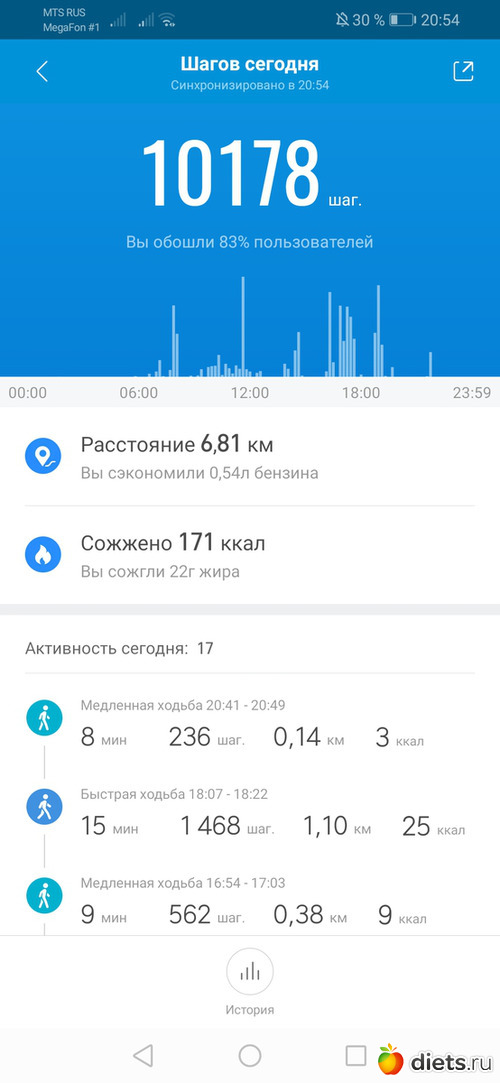 А я сегодня тоже находила больше 16тыс. шагов, почти 12км