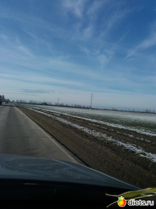 Доброго всем дня или вечера. Уже три дня пронеслось, а я и не заметила. По питаю все в норме, только в субботу опять ездили к бывшей соседке у которой ампутировали ноги и живет одна. И там поела немного окрошки. Не могла отказать, так как она сама сделала и очень нас ждала. Но я себе около 120 гр положила и залила кефиром без кваса. А сегодня у меня опять получилось ИГ 15/6. И завтра не знаю когда смогу поесть, так как первый рабочий день. У нас очень сильные перепады температур между ночью и днем. Ночью минус 5, а днем плюс 10. Зеленые поля под снегом и солнцем в субботу.