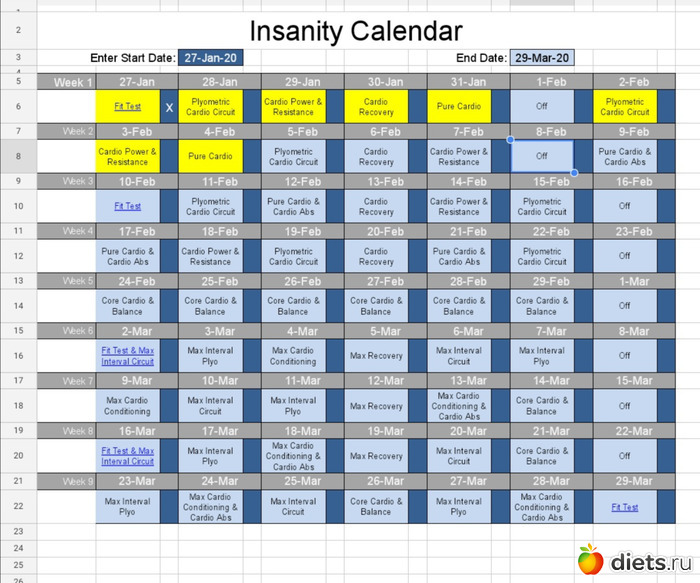 Вот мой график, я сама переношу тренировки, потому что 8числа мы едем в Барселону