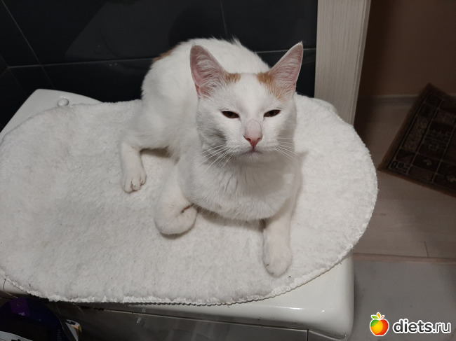 а Филя на белом коврике. Такой белоснежный сфинкс-красавец!!!