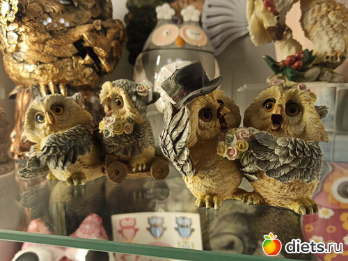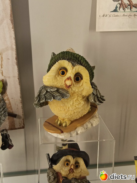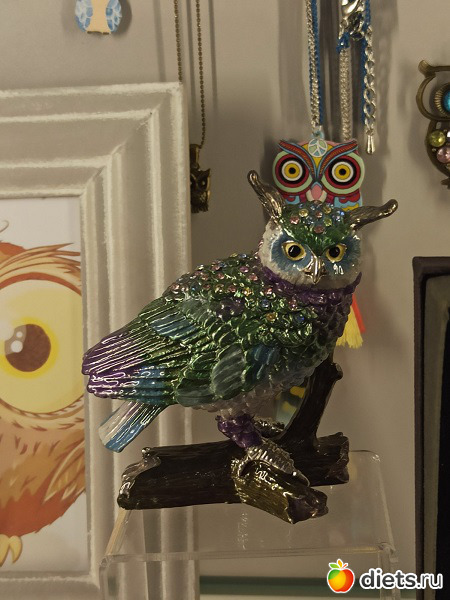 Филины и совы сделаны из разного материала, есть из камня, стекла, имеются тканевые, вязаные и много всяких других - перечислять не стану.