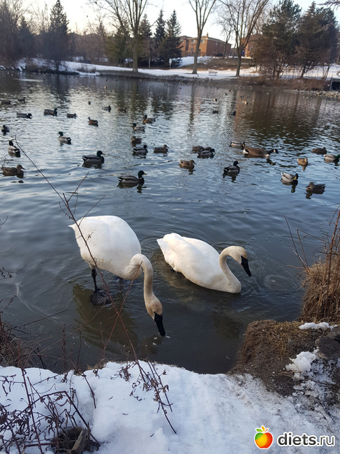 К нам на пруд, где уже обитает не одна сотня уток, прилетели лебеди. Красивые-красивые, и почти ручные. Подплывают и гладить себя разрешают. Красота…