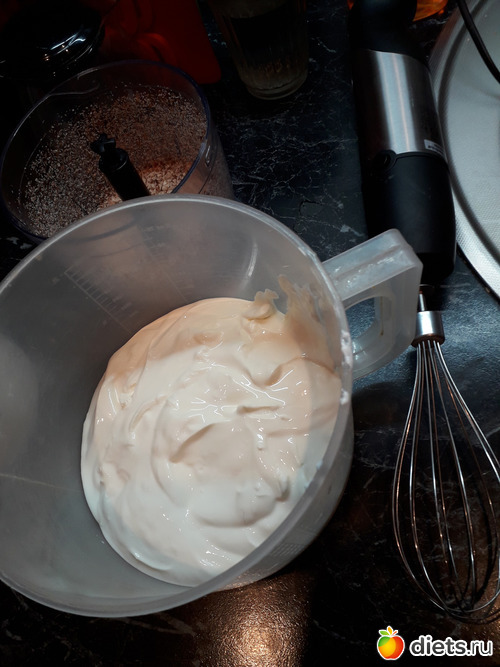 Сметану переложить в отдльную емкость, добавить сахар и взбить миксером минут пять до полного растворения сахарного песка.