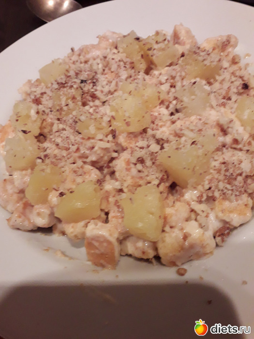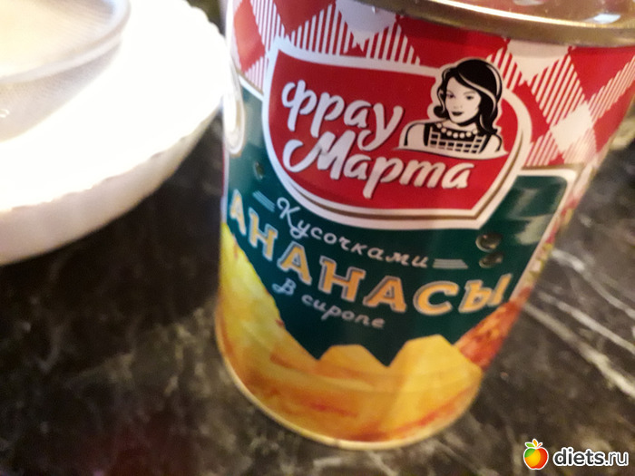Ананас нарезать(у меня уже кусочками), отцедить от сиропа.