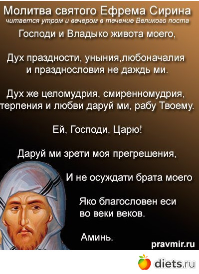 Молитву, которую предание приписывает одному из великих наставников духовной жизни, св. Ефрему Сирину, можно действительно назвать великопостной молитвой, т. к. она особенно выделяется среди всех песнопений и молитв Поста.