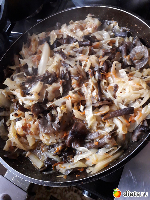 -НАТУШИЛА КАПУСТЫ С ГРИБАМИ(тушу без томата-муж не любит)