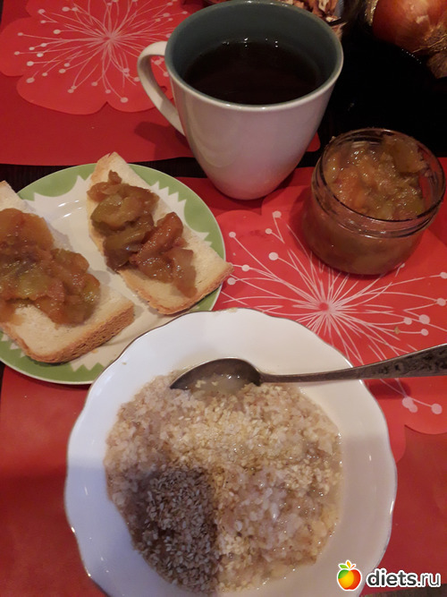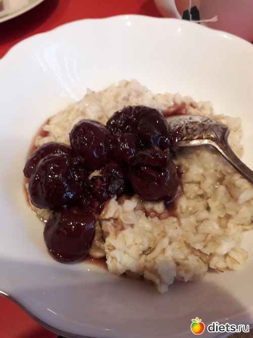 -ОВСЯНКА НА ВОДЕ С ЧЕРЕШНЕВЫМ ВАРЕНЬЕМ (ВНУТРИ КАЖДОЙ ЧЕРЕШНИ ГРЕЦКИЙ ОРЕХ)-по аналогии с Царским вареньем,сестра баночку передала