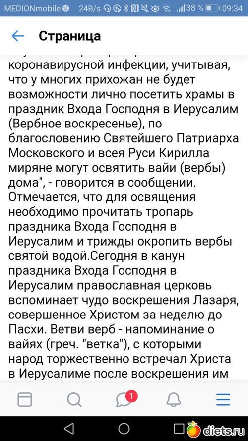 В условиях распространения пандемии, учитывая, что у многих прихожан не будет возможности лично посетить храмы в праздник Входа Господня в Иерусалим (Вербное Воскресение), по благословению Святейшего Патриарха Кирилла верующие могут освятить веточки верб дома следующим образом: