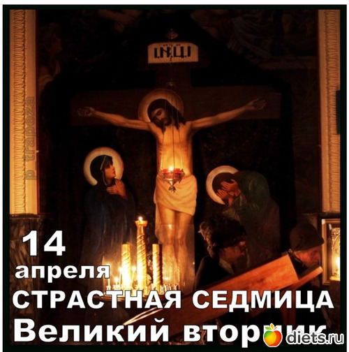 14 апреля, Великий Вторник. Страстная седмица. В храмах совершается Литургия Преждеосвященных Даров. На трапезе по монастырскому уставу сухоядение.