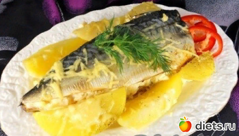 Скумбрия, запеченная с сыром, - нежная и очень вкусная рыбка! Сыр и чеснок придают рыбе неповторимый аромат. Я запекала скумбрию вместе с дольками картофеля, предварительно отварив их на пару. Картофель можно и обжарить. Необычно и очень вкусно!