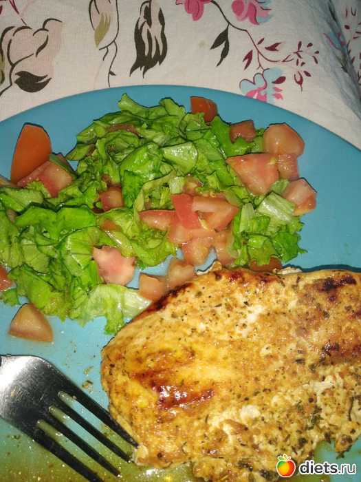 Ужин: Отбивная из индейки, листья свежего салата, бутерброд с плавленным сыром 2 шт.