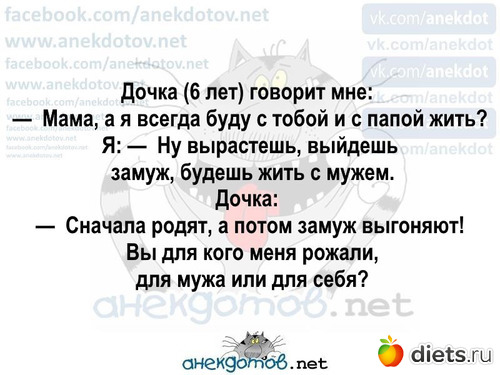 Доктор приходит к больному малышу. Видит — его младшая сестрёнка бегает по полу босиком. — Ну-ка, красавица, надень тапочки, а то заболеешь. После ухода доктора мать замечает, что девочка всё ещё бегает босиком. — Ты слышала, что доктор сказал? — Да, он сказал, что я красавица.
