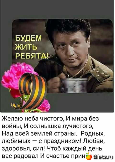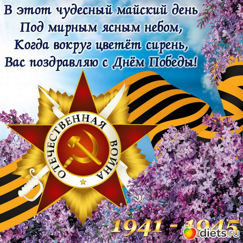 Поздравляю с Днем Великой Победы! Это праздник со слезами на глазах. День Победы символ героизма и мужества.Мы потомки наших великих победителей. Мы всегда будем гордиться и помнить.9 Мая это наш праздник.Так было всегда и будет бесконечно. Желаю крепкого здоровья, счастья и добра. С праздником!