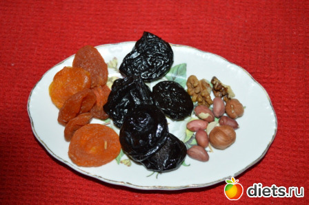 2. Перекус: курага, чернослив, орехи и ещё я выпила небольшую чашечку кофе.