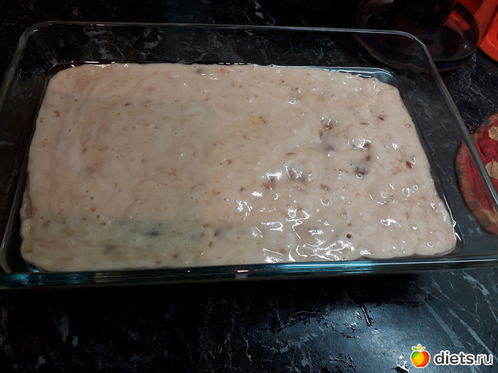 Форму смазываем растительным маслом, выливаем тесто, разравниваем и отправляем выпекать пр температуре 180 градусов 40-50 минут.-до готовности пирога