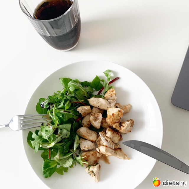 Курица + салатные листья и стакан пепси лайт.