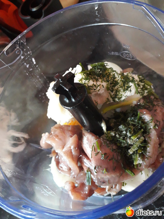 Филе сельди пропускаем через мясорубку(измельчитель) или просто мелко-мелко нарежьте ножом.