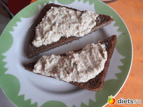 Остаётся дело за малым. Уложить массу в селёдочницу и красиво украсить, у кого, насколько хватает фантазии! И намазать на хлеб или тосты бутерброды!