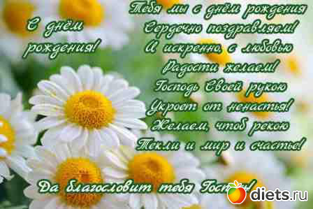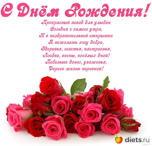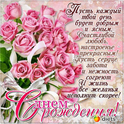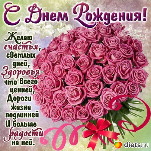 Желаю крепкого здоровья, бодрости духа, добра, побольше поводов для радости и улыбок. Ты Солнышко с очень добрым сердцем, нашего сайта Диетс.