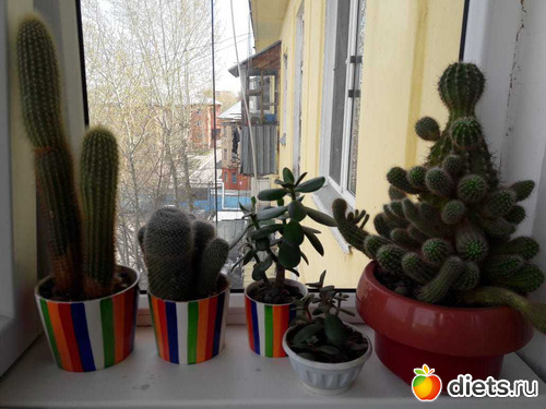 кактусы и суккулентные. Переехали они у меня на лето на балкон.