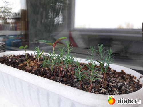 Тут Таня спрашивает и переживает за ёлочки. Я сама за них переживаю. Привезла я их из Крыма. Вернее, не их, а золотые шишки. Шишки эти вдруг открылись и высыпали семена. Я решила их посадить. А они взяли и начали расти