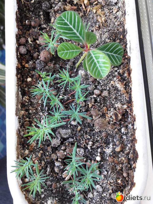 вот молочай, который семенами раскидывается, тоже к драцене подсадила,