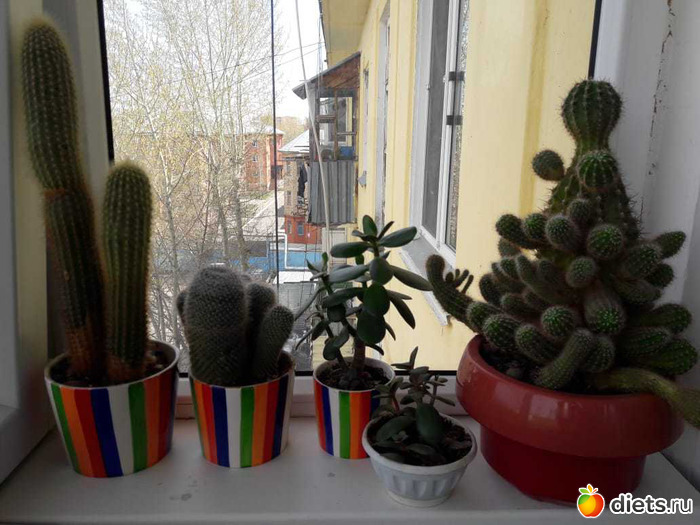 кактусы и суккулентные. Переехали они у меня на лето на балкон.