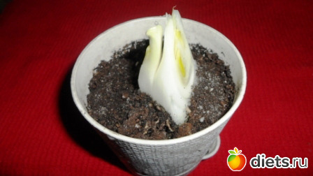 Потом посадить его в землю или в опилки (но у меня их не оказалось)