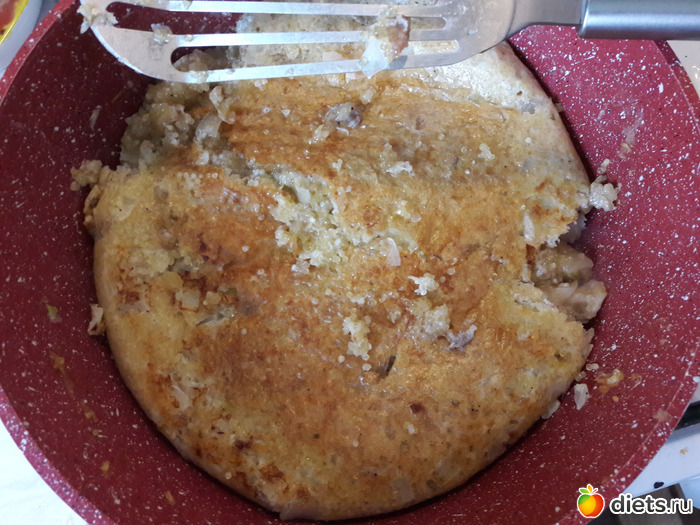 дооолго думала, может таки омлетом? без яйца не так хранит форму, но на такой чудо-сковороде даже россыпь можно перевернуть блином)))