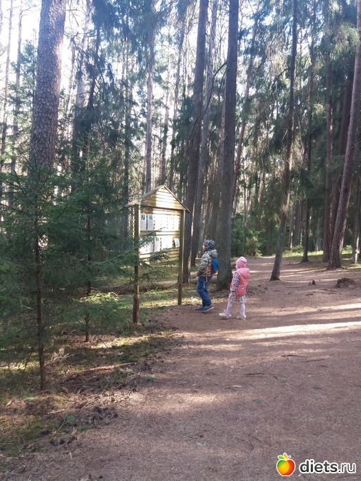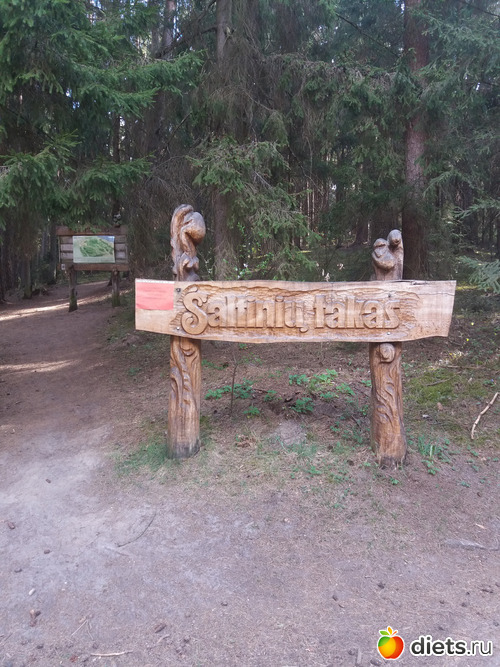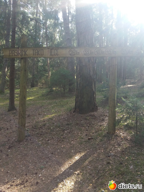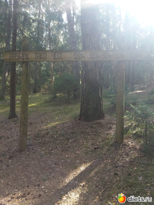 На деревьях есть пометки краской, что б не сбиться с пути, для каждого маршрута свой цвет. Ну и периодически вот такие указатели помечают, куда сворачивать