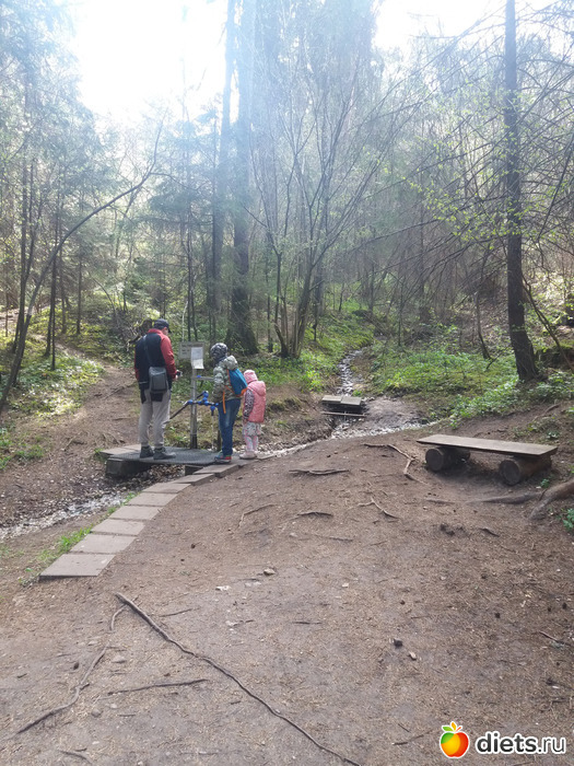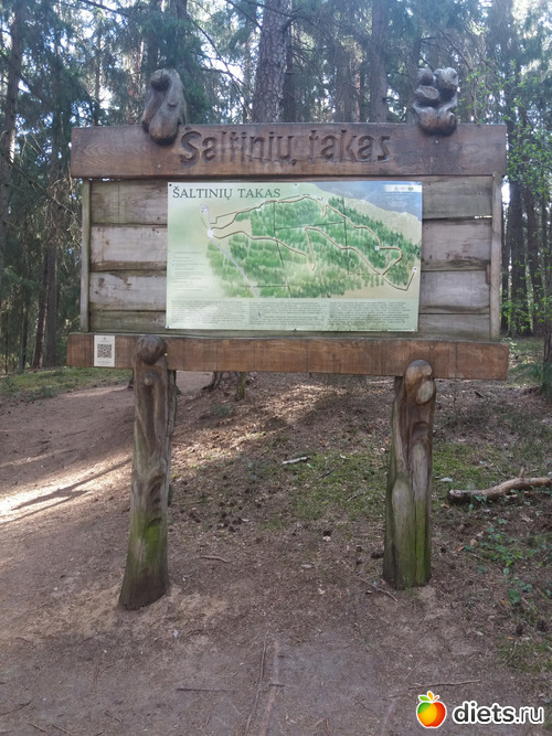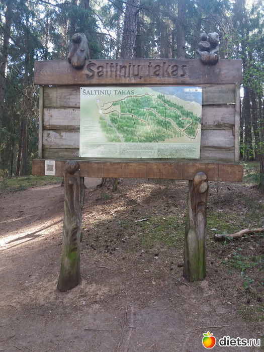 Вот она, Тропа Источников. В начале пути есть карта, кратенькое описание рекомендует тропу для любителей скандинавской хотьбы с палками, а так же для любителей ночных походов - деревья на высоте 2 метров окрашены краской, которая светится в темноте!