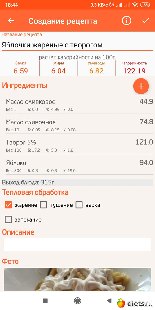 Калорийность продуктов