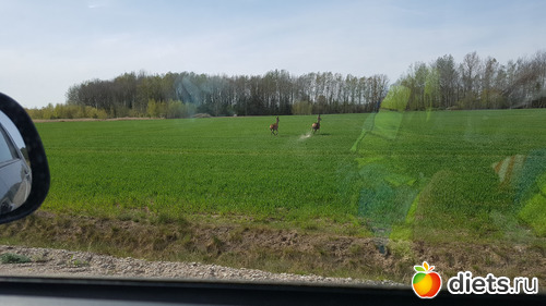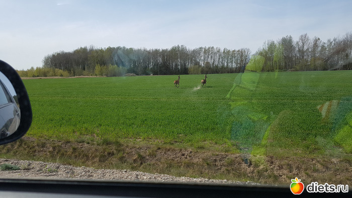 Нагулялись мы сегодня так, что я и сын заснули в машине по дороге домой. И чуть не пропустили вот такие виды: косули свободно гуляют прям вдоль шоссе
