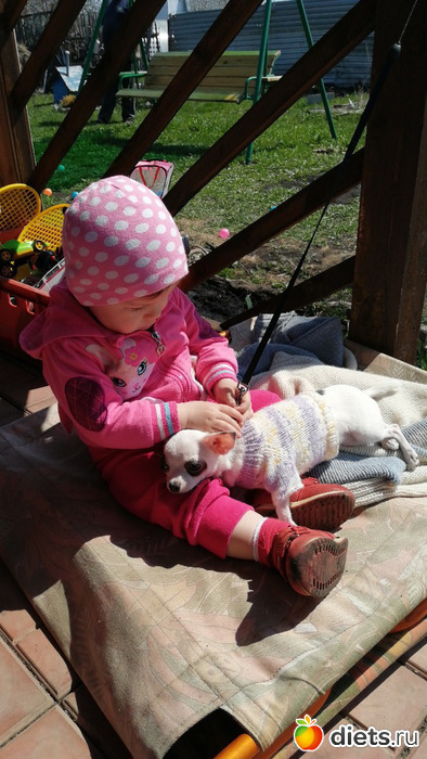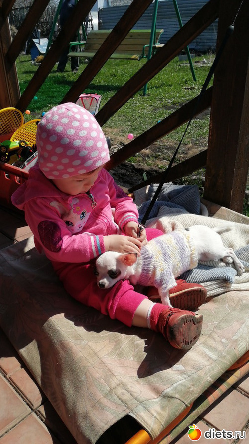Наша малышка, наша чишка. Она на улице была всего раз пять. А тут мы ее повезли на дачу. Холодно вечерами. У нее есть одежда. Она не привыкла, яростно пытается ее снять. Чтобы не убежала ошейник и поводок-рулетка. А где спать? дома спит в своем домике-лежанке. Решили будет спать с нами. Она теплолюбивая. Кровать большая, места хватит. Как ребенка, собрала кофточки, пледики. Забрали лоток из дома, что бы в туалет ей ходить. Приехали. Малышка моя не ест, не пьет, Сидит у меня на груди под теплой кофтой и трясется. Посидели с соседями душевно, из под кофты накормили малышку всякой всячиной типа рыбных котлеток, листьями салата, свежими огурчиками. Спать пошли. Вот думаю, как моя животинка в туалет пойдет. Спала как убитая. Я в пять утра встала по нужде, ее на пол спустила. Пока я ходила, моя девочка все дела в лоток сделала. Умная животинка.
