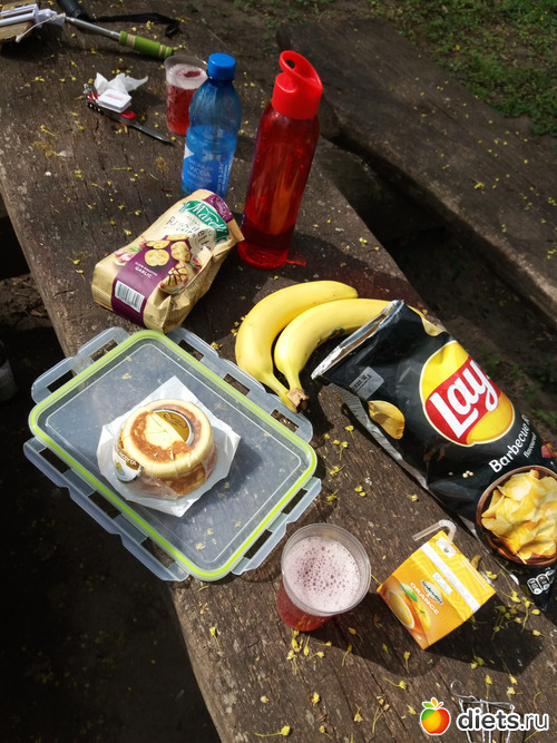 Находим свободную беседку (людей много!) и у нас снова небольшой пикник. Не обошлось и без вредностей..