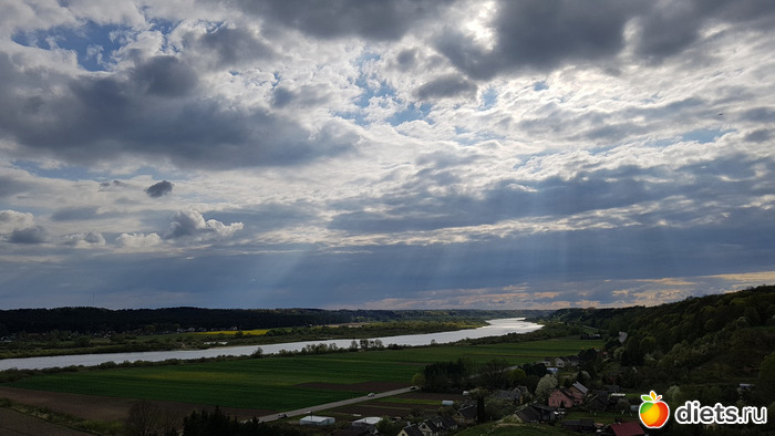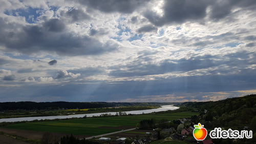 Следующая точка - Вилькия. Поднялись на холм, посмотрели на красивые виды. Рядом с холмом деревянные столики со скамейками, здесь же решили пообедать. На обед у нас - заранее дома приготовленная курица (в духовке на решетках, режим гриль - отлично получилось, кстати