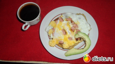 1. Завтрак: кофе, лепёшка, жареное яйцо с колбасой, авокадо. Попробовала сербский хлеб "Слоновье ухо". Но что-то пошло не так, не впечатлил.