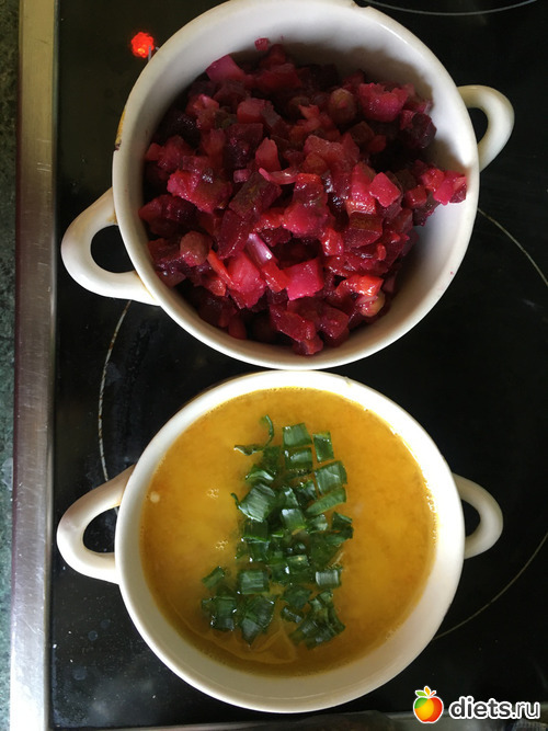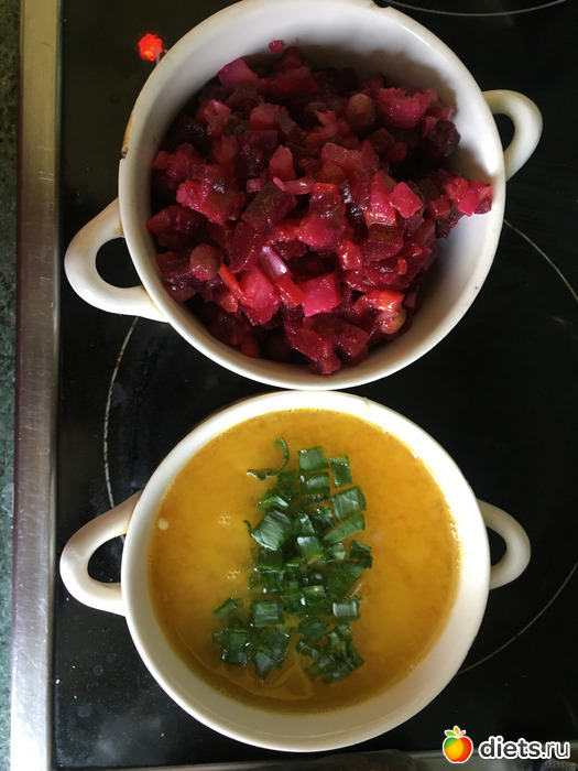 Обед был из 2х блюд для разнообразия- супчик гороховый и винегрет.